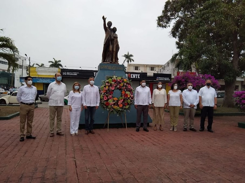 El alcalde de Tampico Jesús Nader Nasrrallah y su homólogo interino de Altamira, Cuauhtémoc Zaleta Alonso, montaron una guardia de honor, este lunes, al pié del monumento a los repobladores en esta ciudad, conmemorando los 198 años de la fundación del puerto, pues debido a la contingencia sanitaria el festejo en caravana de carretas, la sesión solemne de cabildos y la verbena popular, tendrán que esperar al 2022.