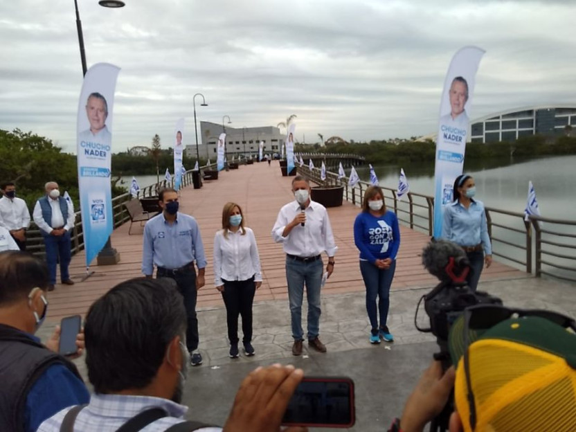 El candidato del PAN a la alcaldía de Tampico, Jesús Nader Nasrrallah, arrancó su campaña hacia la reelección, la mañana de este lunes, en el parque recreativo de la Laguna del Carpintero, acompañado de su esposa, Aída Féres y del resto de la fórmula que integran Mon Marón y Nora Gómez, a las diputaciones locales por el 21 y 22 Distritos, respectivamente, además de la candidata por el 08 Distrito Federal, Rosa González Azcárraga, pues coincidieron que la unidad y continuidad son aspectos claves para seguir avanzando en Tampico y Madero.