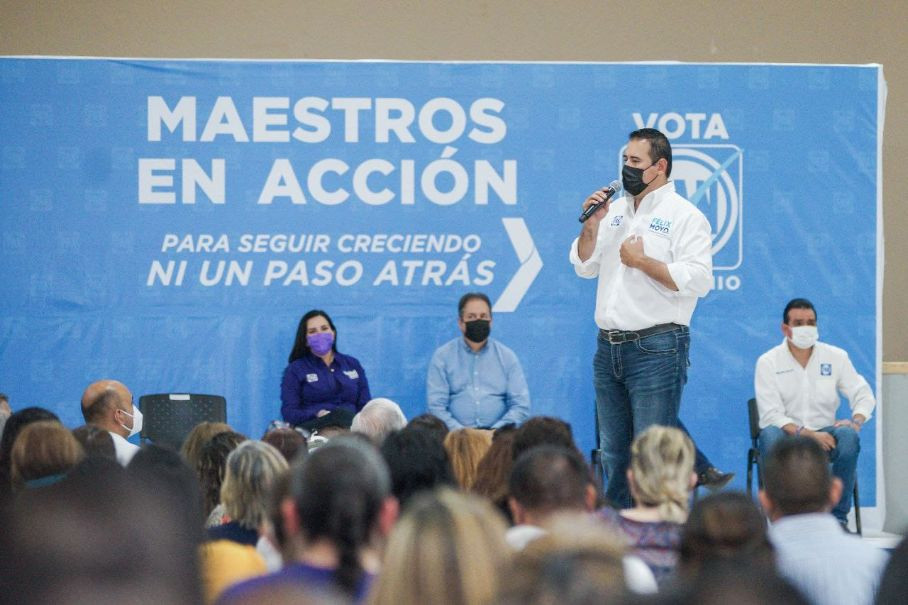El candidato blanquiazul, dejó en claro que los gobernantes panistas marcan la diferencia, pues cumplen los compromisos que hacen, por lo cual en apoyo a las y los docentes, ni un paso atrás.
