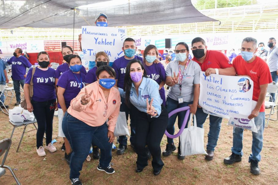Más de 700 trabajadoras y trabajadores del sindicato de maquiladoras se dieron cita esta tarde en la plaza de toros Lauro Luis Longoria para demostrar su respaldo al proyecto de Yahleel Abdala, la candidata del Partido Acción Nacional (PAN) al gobierno de Nuevo Laredo.