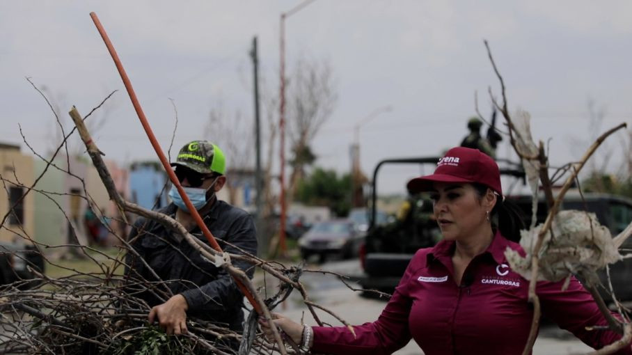 Después de la tormenta que azotó en Nuevo Laredo la noche del lunes 17 de mayo, con vientos superiores a los 150 kilómetros por hora, Carmen Lilia Canturosas suspendió sus actividades y recorrió la ciudad desde el amanecer del martes para solidarizarse con los damnificados.