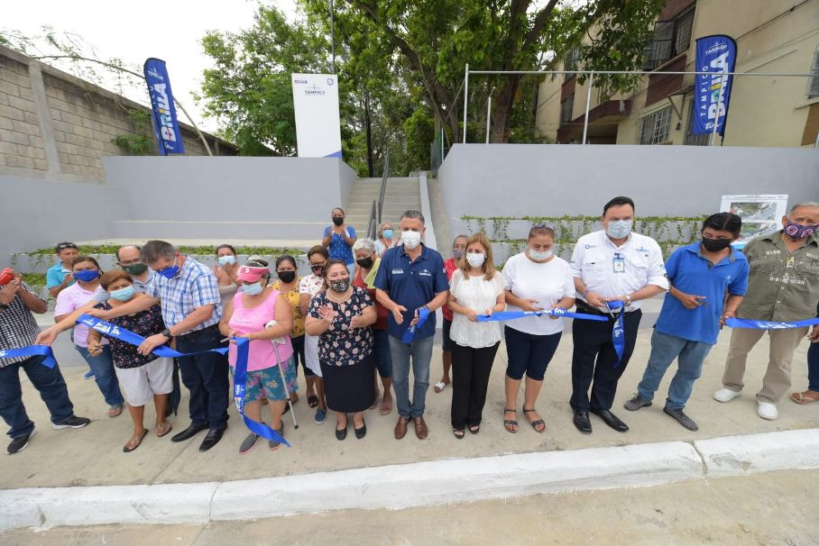 En el marco del programa de recuperación y modernización de espacios públicos, emprendido por el Ayuntamiento de Tampico, el Presidente Chucho Nader inauguró, este lunes, la obra de mejoramiento urbano efectuada en el parque y escalinata del andador Escocia en el fraccionamiento Jesús Elías Piña.