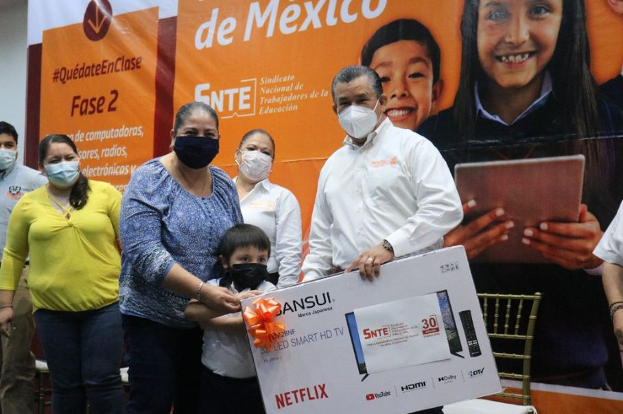 Como parte del programa de apoyo a los estudiantes y con el fin de evitar la deserción escolar, alumnos destacados del Municipio de Nuevo Laredo recibieron aparatos electrónicos dentro del programa “Quédate en casa, quédate en clase” que promueve el Sindicato Nacional de Trabajadores de la Educación.