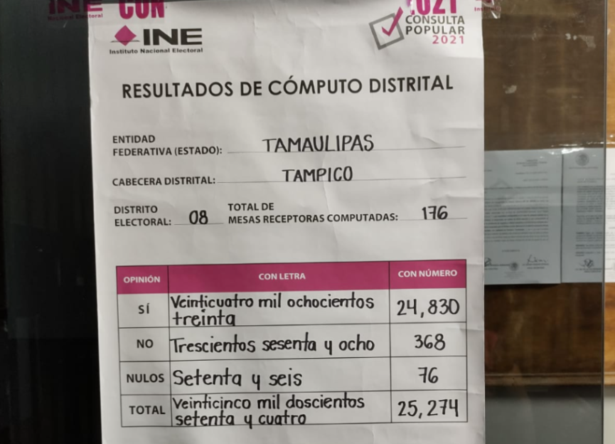 Pasadas las doce de la madrugada de este lunes, tal cómo lo dio a conocer la vocal ejecutiva de la junta distrital 8, se dio a conocer el resultado final del cómputo ciudadano.
