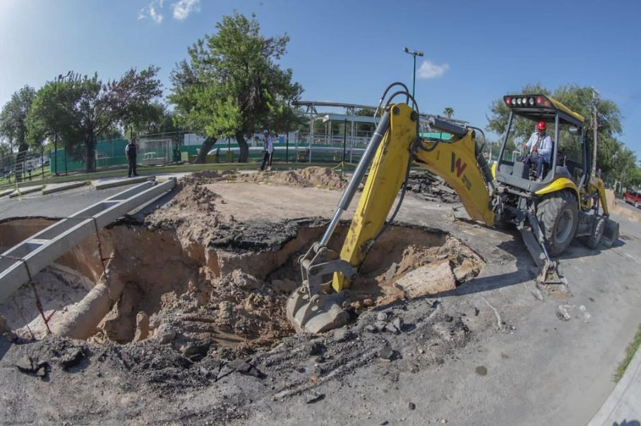 “Va en una forma muy separada de ese socavón, el personal ya se encuentra trabajando para la reparación”, manifestó Sanmiguel Cantú.