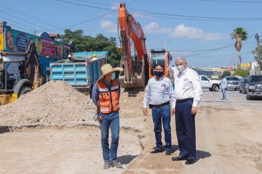 El presidente municipal, Arturo Sanmiguel Cantú, supervisó los trabajos de repavimentación que se realizan en la colonia Ferrocarrilera y la rehabilitación del subcolector sanitario en la Infonavit.