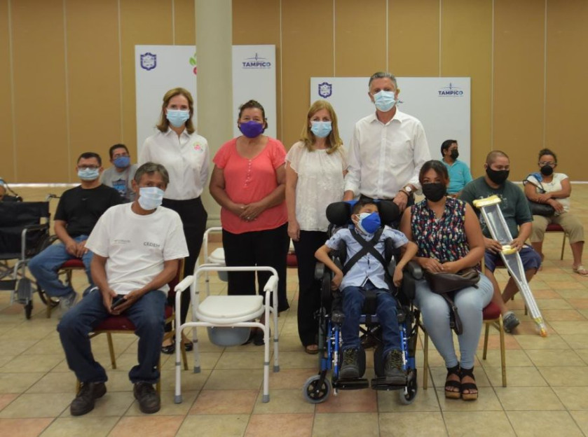 El Presidente municipal Chucho Nader y su esposa Aída Féres de Nader, Presidenta del Sistema DIF Tampico encabezaron la entrega de 48 apoyos funcionales y aparatos de movilidad asistida en beneficio de personas con discapacidad en las instalaciones de la Casa de la Cultura.