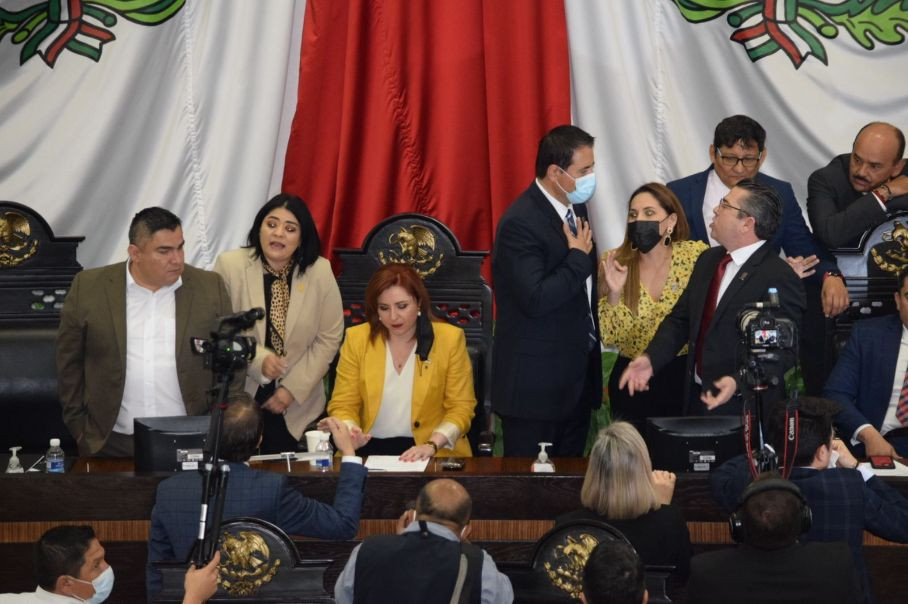 La propuesta del PAN ante el pleno, para no desistir de las Controversias Constitucionales en materia de fuero Constitucional, generó un nuevo enfrentamiento con los diputados de Morena, que decidieron tomar la tribuna y arrebatar los documentos a la Presidenta de la Mesa Directiva del Congreso Imelda Sanmiguel.