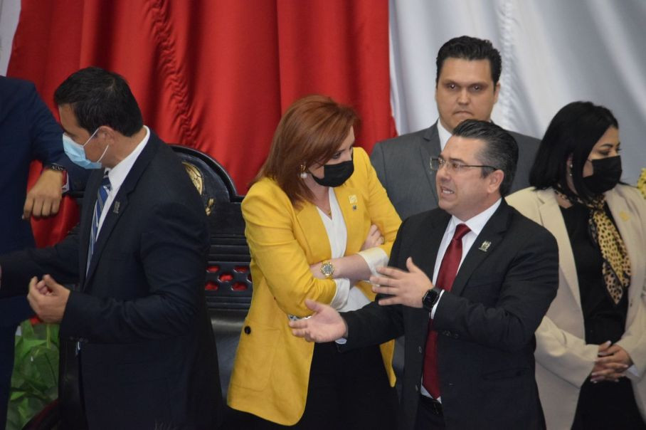 Después de terminar un receso por 20 minutos que el diputado de Morena Isidro Vargas solicitó, varias diputadas de Morena entre ellas Magaly Deandar, se acercaron a Sanmiguel y le arrebató la documentación que tenía en la mesa.