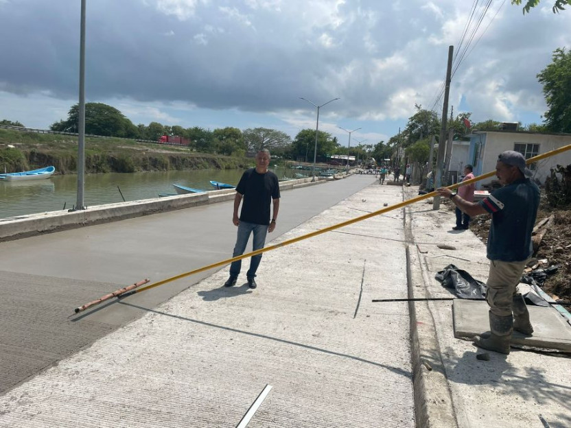 Con la finalidad de generar mayor desarrollo turístico y comercial en el municipio que se traduzca en mayor calidad de vida para la población, el Ayuntamiento de Tampico lleva a cabo la pavimentación a base de concreto hidráulico de la calle Rivera de Tancol, la cual brindará conectividad con el muelle recientemente construido en este sector.