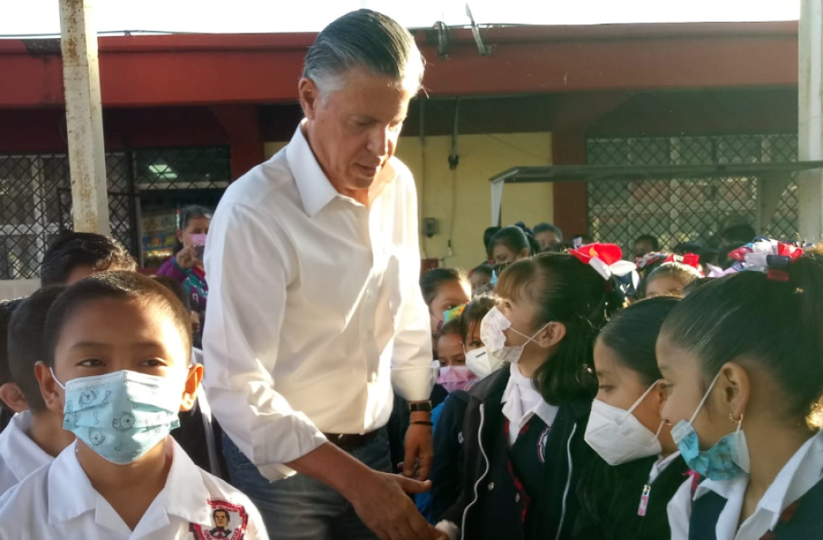 Este lunes la primera autoridad del puerto encabezó, a muy temprana hora, los honores a la bandera en la escuela primaria Ignacio Zaragoza, en compañía de su cabildo y autoridades educativas de los tres órdenes de gobierno.