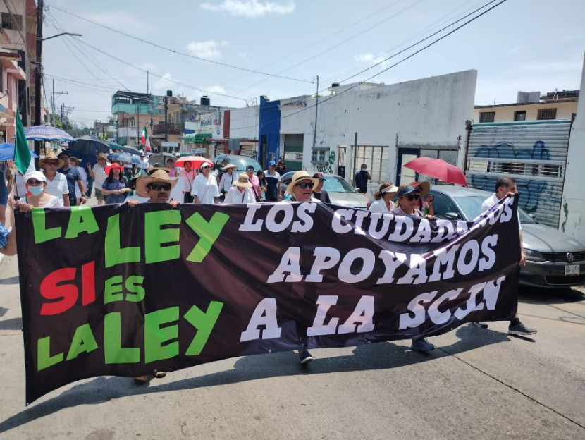 Al grito de que "La Corte no se Toca" "La Ley es la Ley" personas defensoras de la Suprema Corte de Justicia de la Nación caminaron por el bulevar Perimetral hasta entroncar con calle Colón, para desde ahí enfilarse hasta la Plaza de Armas, donde ya aguardaba otro contingente de personas en espera del mitin y posicionamiento en torno a la marcha defensora de La Corte.