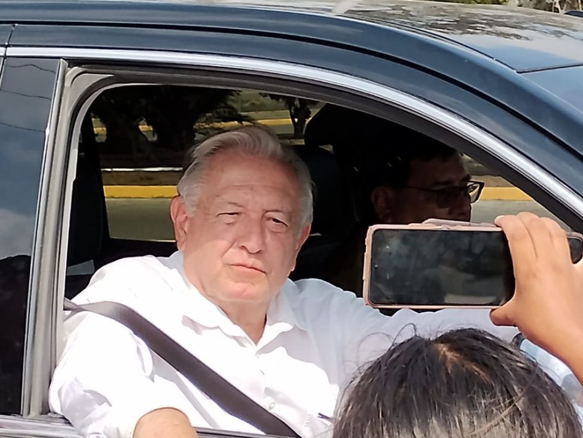 López Obrador, bajó por un instante el vidrio de la camioneta para tomar la mano y saludar al escaso grupo de personas, algunas que intentaban entregar peticiones en sobres de color amarillo.