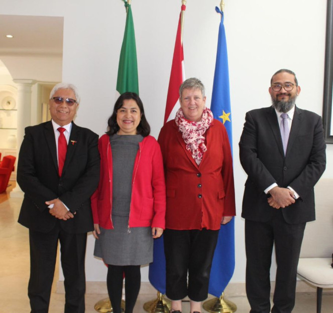 El subsecretario de Electricidad y Energías Renovables, Roberto Manuel Rendón Mares y el subsecretario de Hidrocarburos, Gobirish Mireles, presentaron la visión integral del desarrollo energético de Tamaulipas liderada por el gobernador Américo Villarreal ante Saskia de Smidt, embajadora adjunta y jefa de la Sección Económica de la Embajada del Reino de los Países Bajos en México e Irasema Mendoza Martínez, asesora senior del Departamento Económico de la Embajada del Reino de los Países Bajos en México.