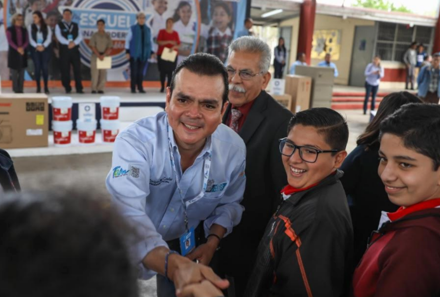 El presidente municipal Enrique Rivas reanudó en este 2020 la segunda vuelta del programa ‘Mi Escuela Digna, Moderna y Saludable’ en la Secundaria General No. 4 Francisco I Madero, a la que dotó de equipo, así como al Jardín de Niños Emiliano Zapata.