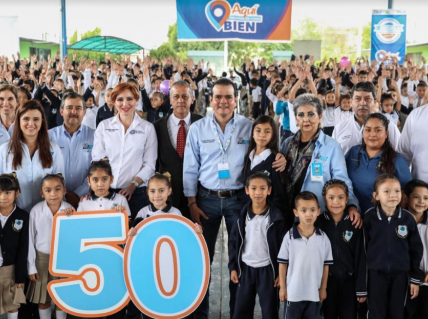 El programa ‘Mi Escuela Digna, Moderna y Saludable’ llegó a la escuela número 50 beneficiada en esta segunda vuelta, con el equipamiento que se entregó este martes a las primarias ‘Arquímedes Caballero Caballero’ matutina y ‘Andrés Osuna Hinojosa’ vespertina, en la colonia Los Fresnos.