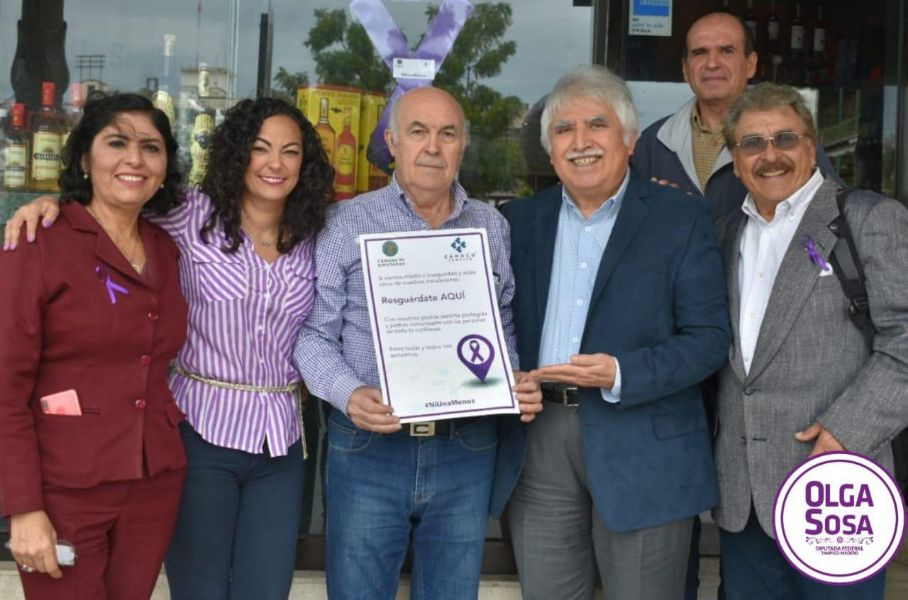 A partir de hoy y todo el año, a través de la Canaco y la Cámara de Diputados del Congreso de la Unión los negocios tendrán de manera visible un lazo de color morado y un cartel con la leyenda “Resguárdate aquí”, “Con nosotros podrás sentirte protegida y podrás comunicarte con las personas de toda tu confianza. Entre todas y todos nos apoyamos".
