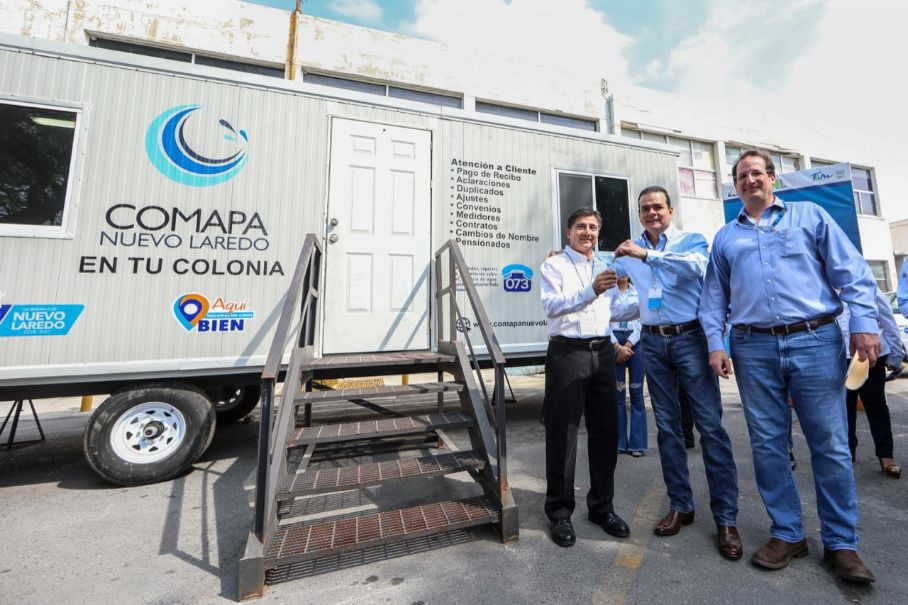 El presidente municipal y el Gerente General de la COMAPA, Luis Roberto Moreno Hinojosa, recorrieron el interior del módulo móvil y constataron que esté equipado para brindar un buen servicio a la ciudadanía.