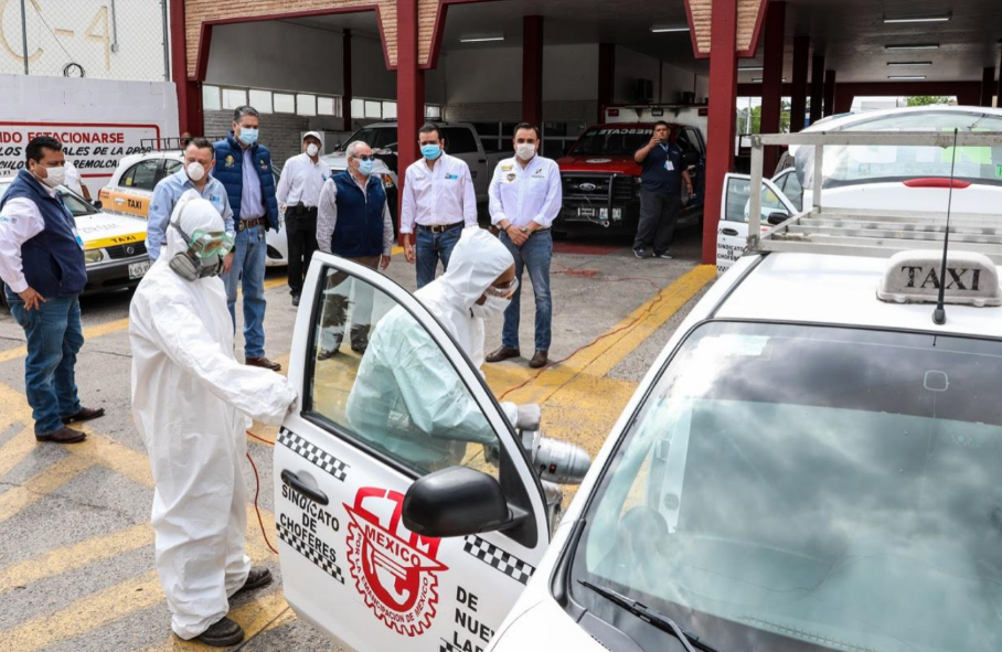 El presidente municipal Enrique Rivas puso en marcha el programa de sanitización de unidades de transporte particular del Sindicato de Taxistas adheridos a la CTM, con el propósito de garantizar a la ciudadanía un servicio libre de Covid-19.