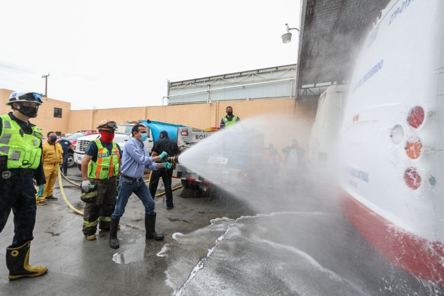 "Este día (jueves) y en conjunto con los concesionarios del transporte público, estamos desinfectando las unidades, así mismo como las dos terminales en su totalidad", agregó Rivas Cuéllar.
