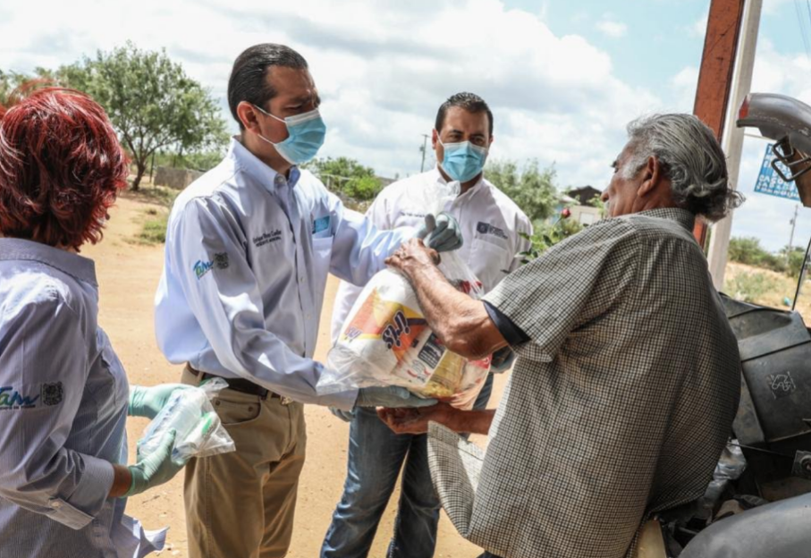 En apoyo a las familias que requieren ayuda alimentaria por las dificultades económicas que ha generado el Covid-19, el presidente municipal Enrique Rivas junto al diputado local Félix García y la regidora Nora Hinojosa entregaron despensas y kits sanitizantes a los habitantes de la colonia Arlin, en el sur de la ciudad.