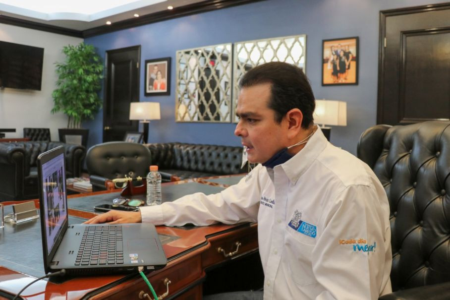 En la reunión, Rivas Cuéllar informó de las acciones que realiza para hacer frente a la pandemia, como la conformación del Comité de Salud Municipal, el apoyo con insumos a hospitales públicos y privados, así como al comercio informal con empleo temporal y despensas.