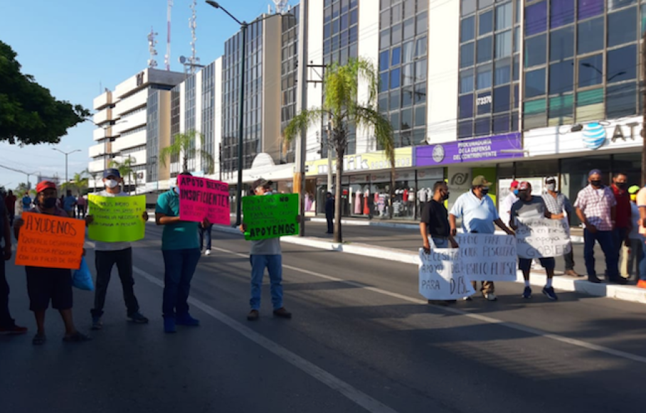 Cuatrocientos pescadores decidieron bloquear este viernes la avenida Hidalgo, frente a las oficinas de pesca, en señal de protesta debido a que el gobierno federal no ha bajado el subsidio para la compra del diesel marino, mismo que utilizarán para salir a altamar y a las lagunas una vez que concluya la veda del camarón.