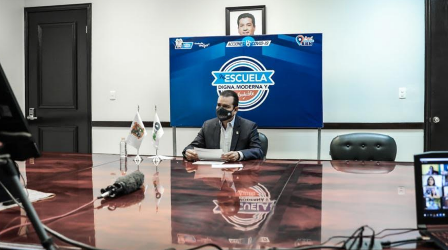 El presidente municipal Enrique Rivas entregó órdenes de compra para equipamiento a 11 jardines de niños y a la Facultad de Enfermería de la UAT, de manera virtual, con los que el programa ‘Mi Escuela Digna, Moderna y Saludable’ llegó a 166 espacios educativos beneficiados, en su segunda vuelta.