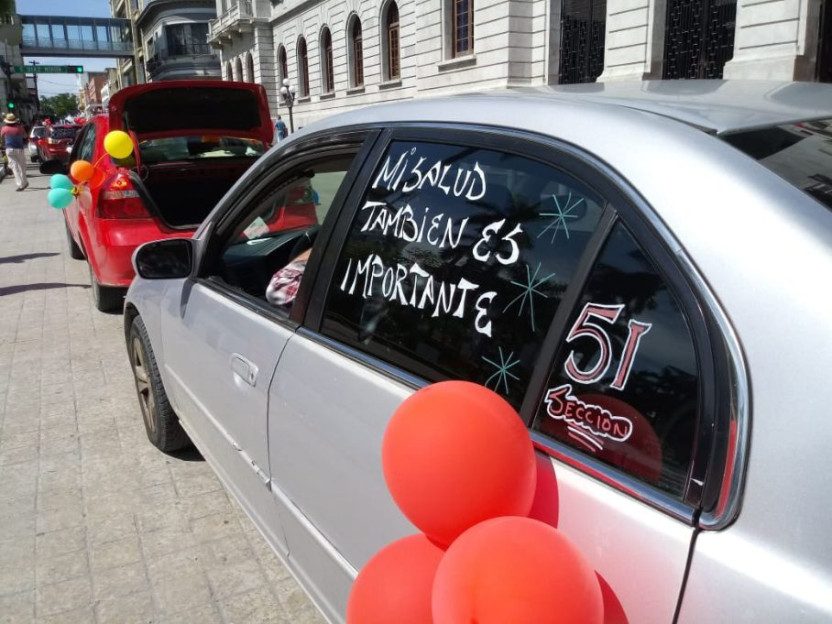 Diversas frases escritas en los vehículos como "mi salud también es importante" "basta de represión al sector salud" "seguridad social para el personal de contrato" "resguardo domiciliario a hipertensos y diabéticos" entre otras más se observaron en las unidades participantes.