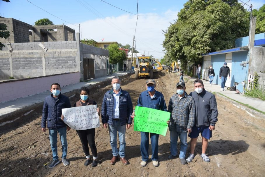 Respondiendo al compromiso contraído con los vecinos de la colonia Carmen Romano, el presidente municipal Chucho Nader puso en marcha los trabajos de pavimentación a base de concreto hidráulico en la calle Gustavo Díaz Ordaz entre Benito Juárez y Guatemala.