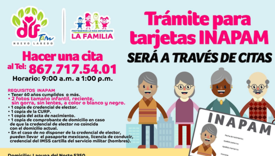 Directivos del Sistema DIF de Nuevo Laredo relanzaron la invitación a todos los interesados en tramitar su tarjeta INAPAM para iniciar el proceso correspondiente que, como s sabe, puede llevarse a cabo via telefónica.