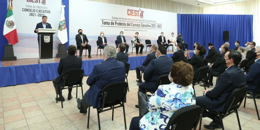El Gobernador García Cabeza de Vaca estuvo en la Zona Conurbada Sur de Tamaulipas como parte de una gira de trabajo en la que tomó protesta al nuevo Comité Ejecutivo del Consejo de Instituciones Empresariales del Sur de Tamaulipas que será presidido por la empresaria del ramo médico Bertha Salinas Ruiz , primer mujer en desempeñar estas funciones en el CIEST.