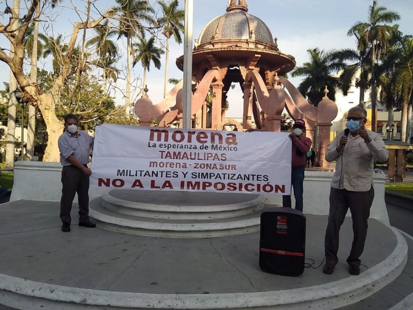 Un grupo de personas que dijeron ser simpatizantes y militantes de Morena, en la zona sur, volvieron a manifestarse la tarde de este jueves en la plaza de armas, exigiendo al CEN de su instituto político los tome en cuenta como abanderados, y de paso mostraron una vez más su descontento a las candidaturas externas.