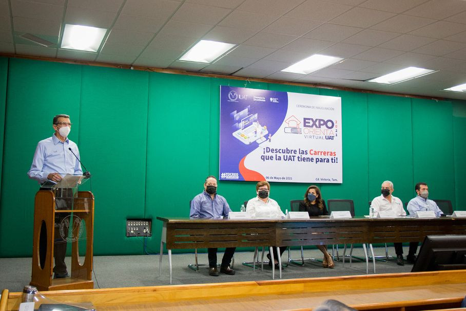 En la ceremonia presencial efectuada en el auditorio del Centro de Excelencia del Campus Victoria, el Rector de la UAT, Ing. José Andrés Suárez Fernández, puso en marcha la exposición virtual de programas educativos y dio la bienvenida a estudiantes del nivel medio superior que siguieron la ceremonia por la plataforma Microsoft Teams y por Facebook.