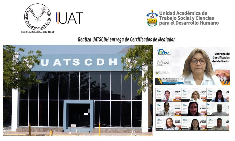 Como parte de las acciones establecidas para el cumplimiento del Plan de Desarrollo Institucional de la Universidad Autónoma de Tamaulipas (UAT), la Unidad Académica de Trabajo Social y Ciencias para el Desarrollo Humano (UATSCDH), en colaboración con la Dirección de Mediación del Estado de Tamaulipas, realizó la ceremonia virtual de entrega de certificados de mediador a los catorce estudiantes de los programas educativos de Trabajo Social y Psicología que acreditaron dicho curso de mediación en materia familiar.