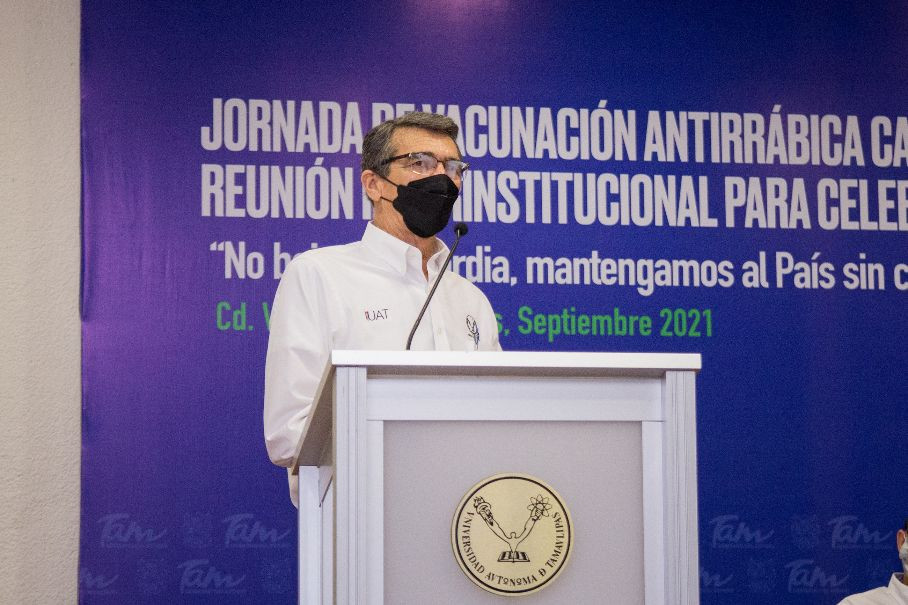 Teniendo como sede a la Facultad de Medicina Veterinaria y Zootecnia (FMVZ) “Dr. Norberto Treviño Zapata”, la Universidad Autónoma de Tamaulipas (UAT) y la Secretaría de Salud del estado llevaron a cabo el Foro Interinstitucional para celebrar el Día Mundial de la Rabia y la ceremonia de clausura de la Jornada de Vacunación Antirrábica Canina y Felina 2021.