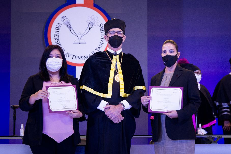 El Rector Ing. José Andrés Suárez Fernández presidió en esta capital la ceremonia de entrega de Reconocimientos al Mérito Universitario 2021, que cada año se otorgan con el propósito de distinguir y alentar a quienes han sobresalido en el campo académico y administrativo en la Universidad Autónoma de Tamaulipas (UAT).