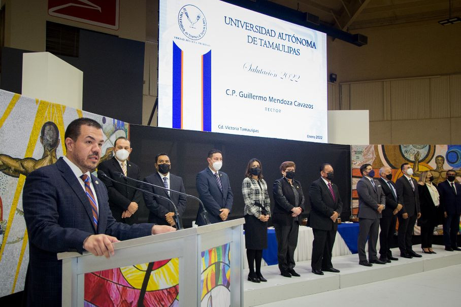 El C. P. Guillermo Mendoza Cavazos, Rector de la Universidad Autónoma de Tamaulipas (UAT), convocó a unir esfuerzos y voluntades en el inicio de este nuevo año y de una nueva gestión rectoral, que plantea grandes retos y oportunidades para seguir creciendo y siendo fuertes en la máxima casa de estudios de la entidad.