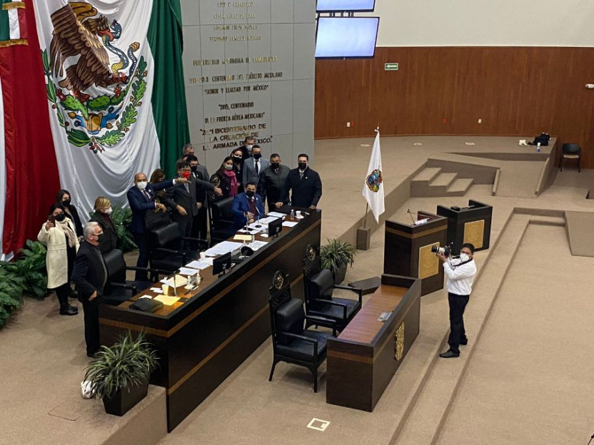 La fracción de Morena decidió tomar la tribuna del Congreso del Estado, por no declarar válida la Ley del Fondo de Capitalidad, al declarar la Presidenta de la Mesa Directiva q que no se cumplió con las dos terceras partes de la votación, aunque fuera votada por mayoría simple.