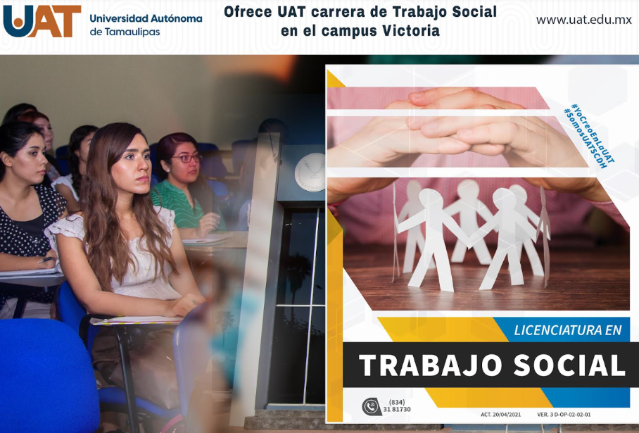 La Unidad Académica de Trabajo Social y Ciencias para el Desarrollo Humano (UATSCDH) de la Universidad Autónoma de Tamaulipas (UAT) informó que se encuentra abierto el proceso de admisión 2022-3 para la Licenciatura en Trabajo Social, por lo que las personas interesadas pueden acercarse para conocer más detalles de este programa académico.