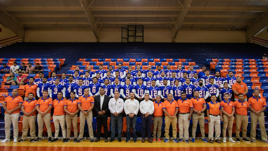 Previo al encuentro inaugural de este sábado, el Rector Guillermo Mendoza hizo la presentación del Correcaminos de la UAT donde recibió el jersey oficial del equipo y resaltó la importancia de impulsar el futbol americano así como las diferentes disciplinas deportivas en la casa de estudios.