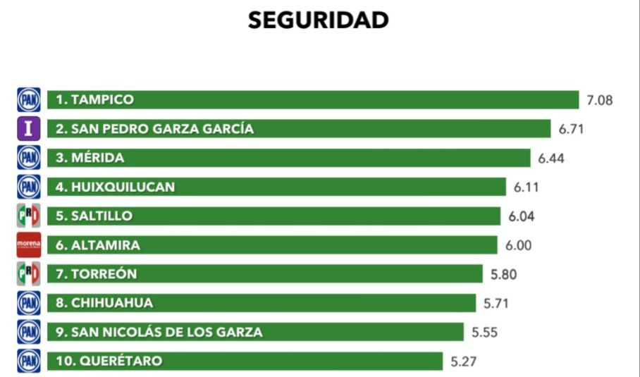 Tampico obtiene un 7.08 en Seguridad, manteniendo la posición tras varias encuestas incluso, en algunas de otras empresas encuestadoras.