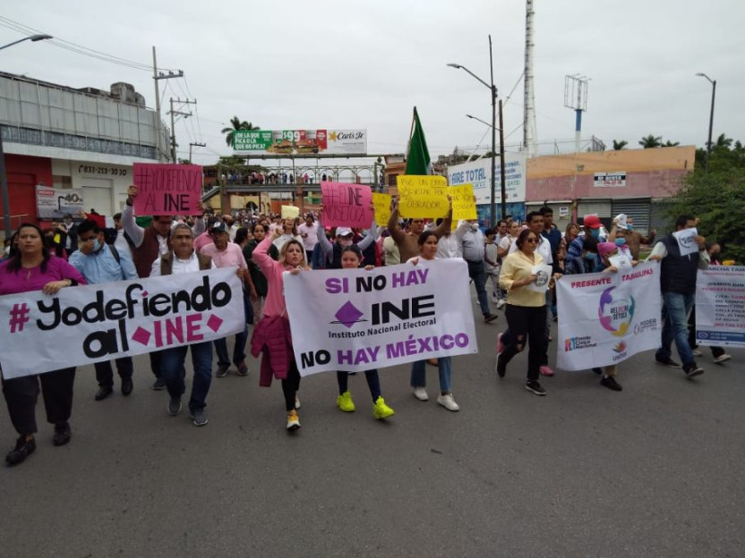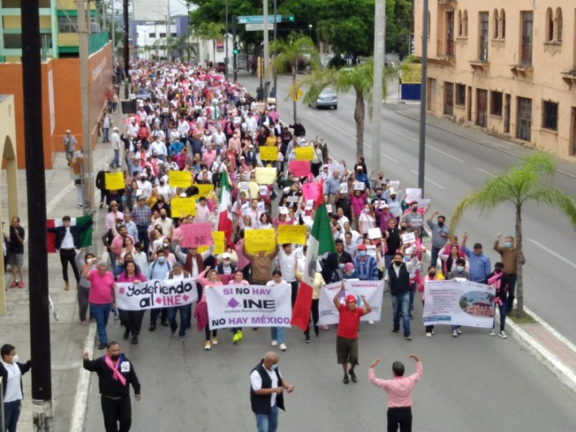 Asociaciones civiles y sociedad en general que conformaron una columna de poco más de cinco mil personas, marcharon éste domingo por la avenida hidalgo, en Tampico hasta la plaza de Armas, en franca desaprobación a la reforma electoral, que planteó el jefe del ejecutivo al congreso de la unión y que en éstos momentos se encuentra en análisis y discusión.