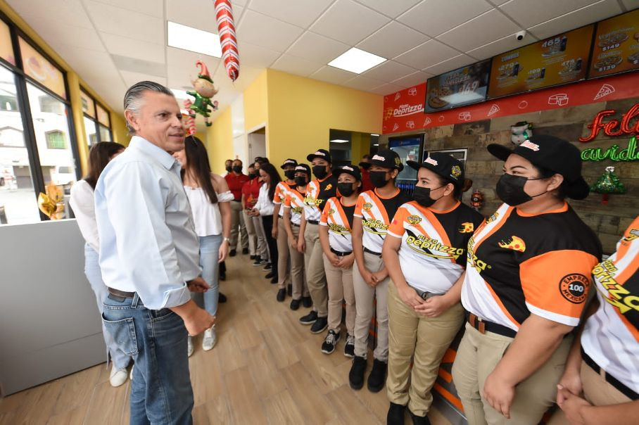 Al presidir la inauguración de un nuevo establecimiento de la cadena gastronómica "Pizza DePrizza" ubicado sobre la avenida Emilio Portes Gil, el Jefe de la comuna valoró la confianza de los empresarios e inversionistas por seguir generando empleo y derrama económica en el municipio y en la zona conurbada.