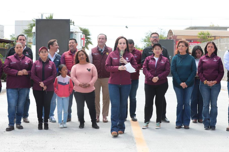 Como parte de la gira de entrega de obras, la alcaldesa estuvo en la colonia Francisco Villa, donde entregó la pavimentación con concreto hidráulico de la calle Adelitas entre