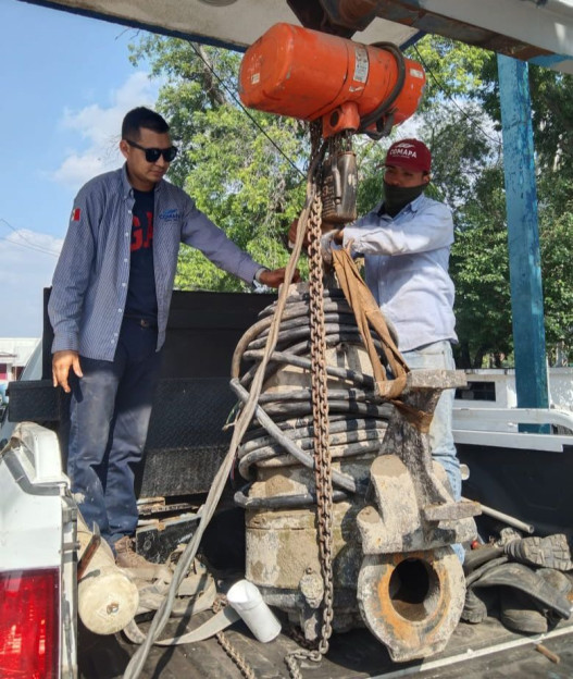 Sin afectar el servicio del suministro de agua a la población, la Comisión Municipal de Agua Potable y Alcantarillado (COMAPA), dio mantenimiento a la bomba de captación número 3 en planta Norte.