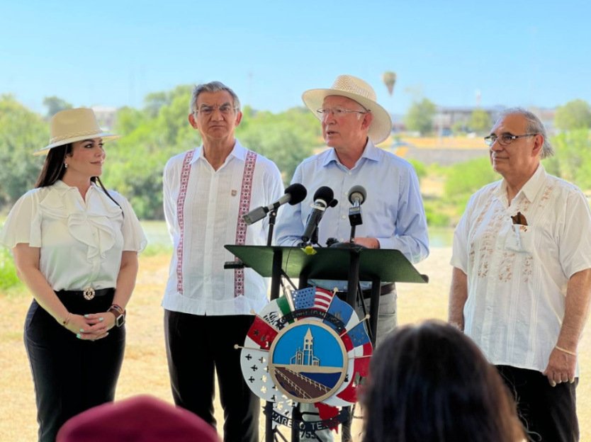 En una rueda de prensa, en las márgenes del río Bravo, en el lado americano y luego de una reunión privada y de realizar un recorrido por el sendero Las Palmas, abajo del Puente Internacional 2, para conocer el proyecto del Parque Binacional, el embajador de los Estados Unidos en México y el gobernador de Tamaulipas coincidieron en la importancia de impulsar de manera conjunta lan relación entre México y Estados Unidos. "Me da mucho gusto en esta interacción constatar que el embajador es un humanista, es una gente que también lo que ve y procura en el fondo es el desarrollo y el bienestar social de las comunidades y en esas oportunidades, pues tenemos grandes alientos en lo que corresponde en esta frontera de Tamaulipas y el estado de Texas, en relaciones que favorezcan una oportunidad de desarrollo económico social, de protección del medio ambiente y de atención a nuestra ciudadanía", expresó el gobernador Américo Villarreal.