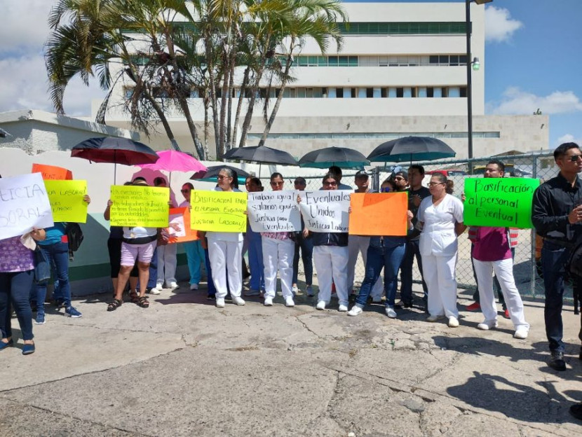 Con pancartas como "los eventuales no tenemos servicio médico" "justicia laboral" "trabajo igual, salarios iguales" entre otras, los trabajadores eventuales tomaron la banqueta del nosocomio para exigir al Presidente de México y al director general del IMSS, Zoe Robledo; aterricen de una vez por todas los beneficios del programa IMSS-Bienestar en la zona sur, debido a que a dos meses de iniciar esa nueva política social, no hay resultados satisfactorios en los hospitales de la entidad. Ángel Gaytán Bárcena, quién dijo laborar en el Hospital Civil de Tampico, advirtió que no hay condiciones de trabajo comparado con el resto de la base trabajadora, pues mientras un sindicalizado o basificado gana más de 8 mil pesos al mes "nosotros estamos ganando 2700 pesos, un enfermero, mientras que uno de base gana 7800 pesos", recalcó