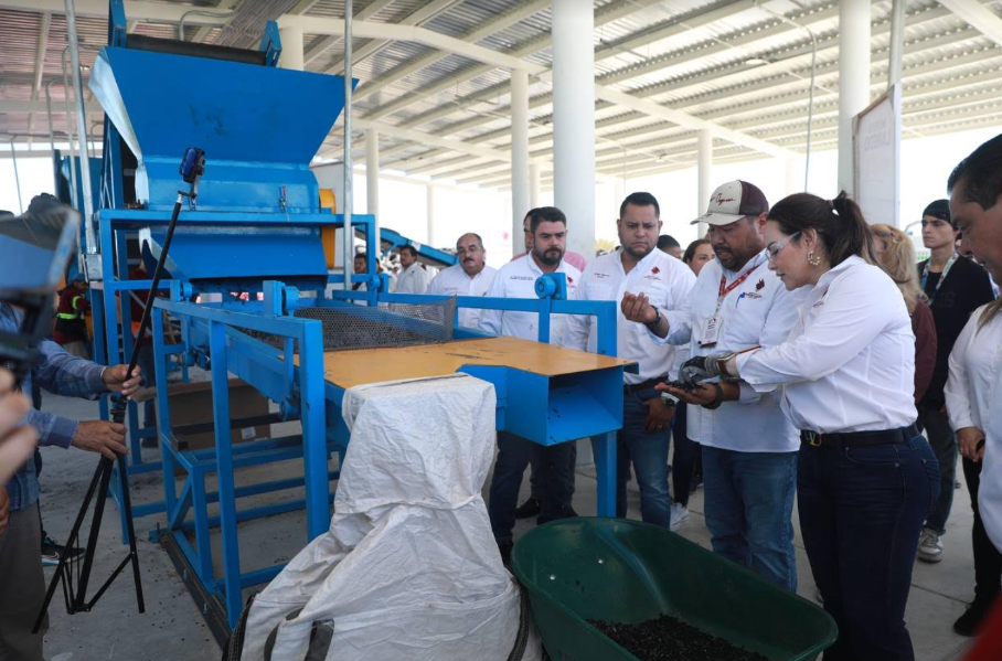 Después del arranque de la trituradora, Canturosas Villarreal en compañía de síndicos, regidores y autoridades municipales, realizaron un recorrido para supervisar y conocer cómo funciona la máquina.