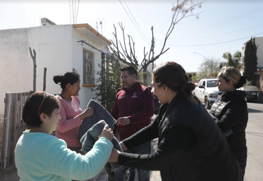 Durante un recorrido y visitas a las colonias Valles del Paraíso,Granjas Treviño, El Caporal y Santa Cecilia se otorgó a los habitantes más de mil cobijas con las cuales podrán mitigar el frío.
